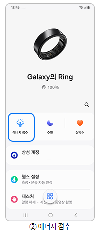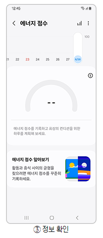 1단계) Galaxy Wearable(갤럭시 웨어러블) 앱 실행 후 에너지 점수 에 진입합니다.