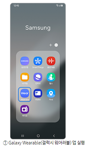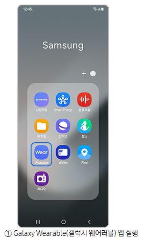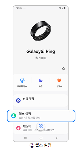 1단계) Galaxy Wearable(갤럭시 웨어러블) 앱 실행 후 헬스 설정 에 진입합니다.