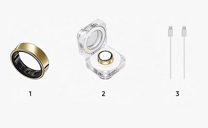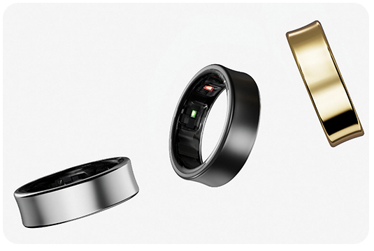 갤럭시 링은 사용자 개성에 맞춰 세 가지 색상 옵션을 제공합니다. 티타늄 블랙, 티타늄 골드, 티타늄 실버 중 선택 가능하며, 매트와 하이글로시 마감으로 마감 처리되어 있어 스타일리시한 느낌을 줍니다. 반지의 바깥쪽 컬러와 안쪽 블랙 커버의 조합은 고급스럽고 세련된 외관을 완성해 주며, 다양한 스타일과 쉽게 어울립니다. 또한 갤럭시 링은 총 9가지 사이즈 옵션을 제공하여 다양한 손가락 크기에 맞춰 착용이 가능합니다.