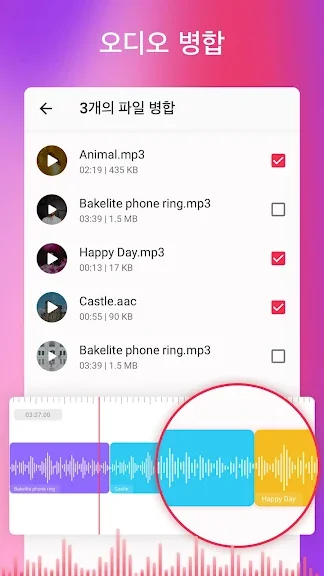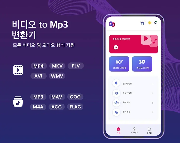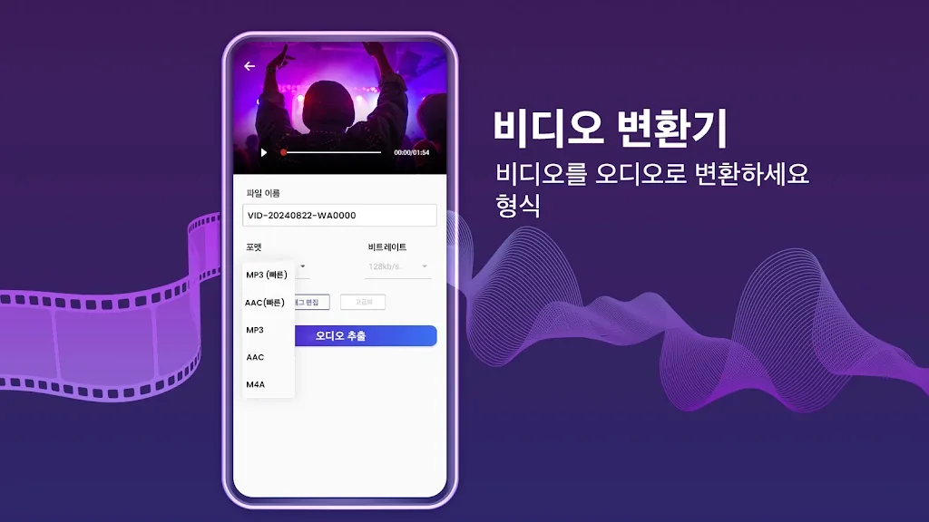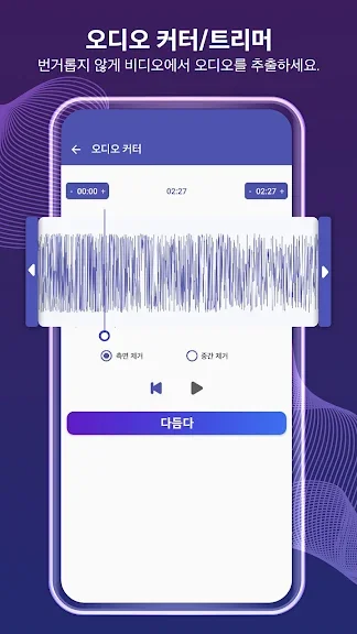 동영상을 앱에 업로드한 후 원하는 부분을 자르거나 다듬고, MP3나 AAC 형식으로 변환하세요. 비트 전송률과 메타 정보를 설정하여 자신만의 맞춤 오디오 파일을 손쉽게 생성할 수 있습니다.