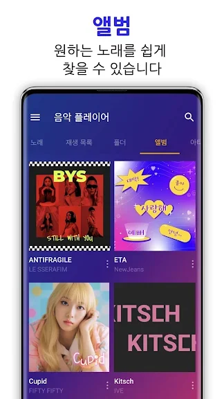 이 앱을 사용하면 기기에 저장된 모든 음악을 자동으로 검색하고, 제목, 아티스트, 앨범별로 정리하여 쉽게 찾아 들을 수 있습니다. 직관적인 인터페이스를 갖추고 있어 원하는 곡을 빠르게 재생할 수 있으며, 이퀄라이저 기능을 활용해 자신만의 맞춤 사운드를 설정할 수도 있습니다.