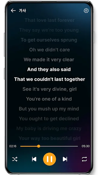 - 노래 가사 제공 기능으로 따라 부르기 가능