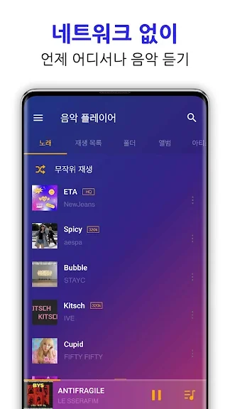 스마트한 음악 감상을 위한 완벽한 선택, 강력한 기능과 세련된 디자인을 갖춘 음악 플레이어 앱을 소개합니다. 다양한 오디오 형식을 지원하며, 직관적인 인터페이스와 강력한 이퀄라이저 기능으로 최상의 사운드를 제공합니다. 이제 와이파이 없이도 언제 어디서나 자유롭게 음악을 감상해 보세요.