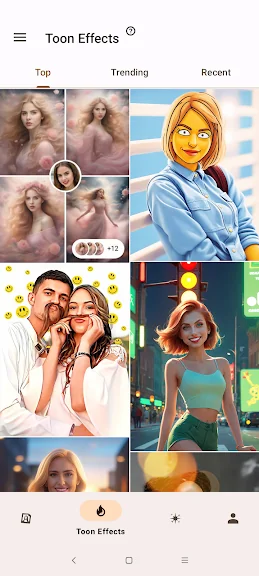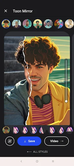 ToonMe에서 자동 인공 지능의 마법을 사용하여 자신의 사진을 만화나 벡터 스타일로 다시 그려보세요. 전문 아티스트에게만 주문하고 제작에도 오랜 시간이 걸렸던 작업이 이제는 단 한 번의 탭으로 가능하답니다. 나만의 디지털 아티스트가 되세요.