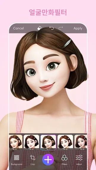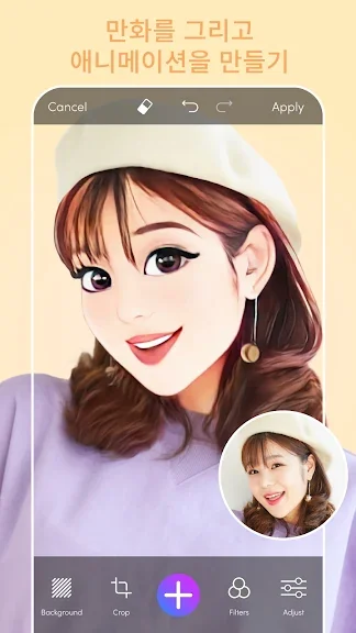 이 사진 편집기를 사용하여 전문가처럼 몇 초 만에 직접 만화에 도전해 보십시오. 사진 갤러리에서 달콤한 셀카 하나를 선택하고 멋진 3D 만화 캐릭터 메이커를 위한 수많은 캐리커처 얼굴 앱 필터를 적용하세요. 얼굴을 사랑스러운 애니메이션 영화 캐릭터로 쉽게 바꿀 수 있습니다. Instagram, Facebook, WhatsApp, Pinterest 및 TikTok에서 친구를 놀라게 할 준비를 해보세요.