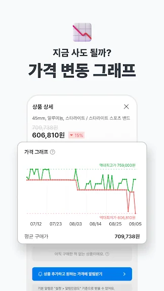 - 최저가 추이 그래프로 기간별 가격 변동을 한 눈에 볼 수 있어요.