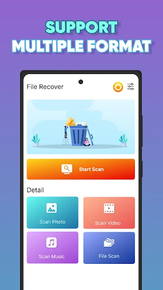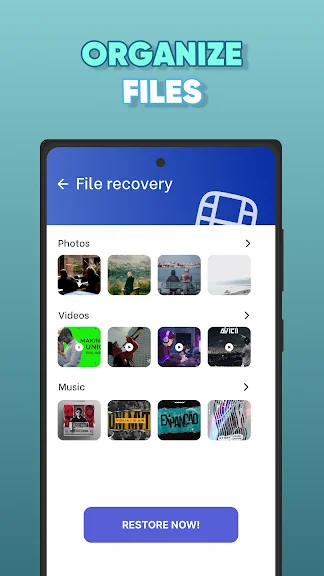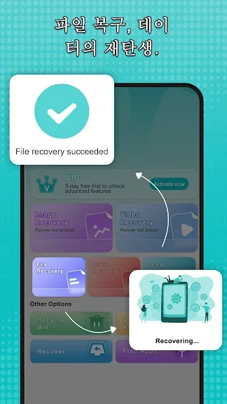 파일 복구 - 사진 복구를 소개합니다. 장치에서 삭제된 사진, 비디오 및 오디오 파일을 검색하기 위한 궁극의 앱입니다. 강력한 복구 알고리즘과 휴지통을 사용하면 몇 번의 탭만으로 삭제된 사진과 비디오를 쉽게 복구할 수 있습니다.
