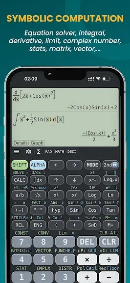 고해상도 디스플레이를 갖춘 이 계산기 앱은 수식, 그래프 및 결과를 선명하게 표시하여 사용자가 계산 결과를 쉽게 읽고 해석할 수 있도록 합니다. 인체공학적인 키패드 레이아웃은 매끄러운 입력을 가능하게 하여 사용자가 정확하게 수식과 명령을 입력할 수 있게 합니다.
