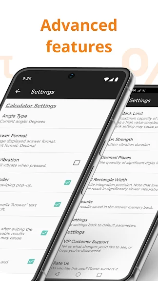 - 공학용 계산기: 복소수, 미적분, 적분, 도함수, 극한, 소인수분해, 행렬, 벡터, 통계 및 분포