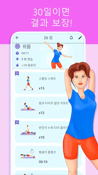 2) 30일만에 뱃살 빼기 - 홈트레이닝, 평평한 배 만들기 어플 스크린샷
