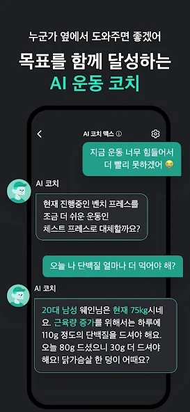 운동 후에는 캘린더와 그래프로 변화 과정을 한눈에 볼 수 있어요. 체중이나 체성분 변화도 체크하면서, 나의 성장이나 목표 달성 상황을 파악하는 것도 쉽죠. 이렇게 기록이 쌓이면 AI 추천도 더 정밀해져서, 매번 더 알맞은 운동을 제안받을 수 있어요.