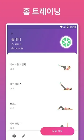 홈트레이닝: 운동 어플에 대한 스크린샷 정보가 필요하시다면 아래 이미지를 참고하시기 바랍니다.