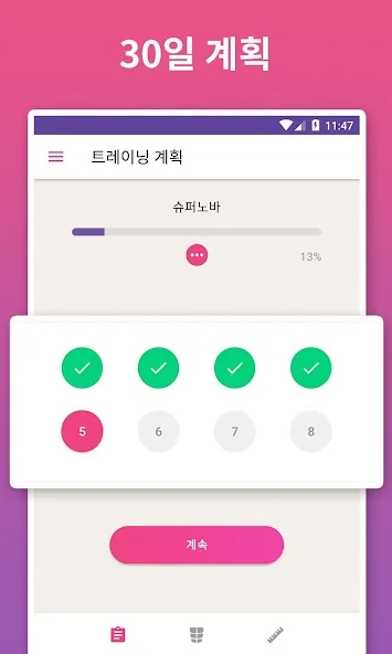 이 앱은 특별한 장비 없이 집 어디서든 할 수 있는 운동들이 담겨 있어요. 복근과 코어 근육을 목표로 하는 다양한 난이도별 프로그램이 있어 초보자부터 숙련자까지 모두 활용할 수 있답니다. 운동 영상과 애니메이션 가이드 덕분에 자세도 쉽게 따라할 수 있어요.