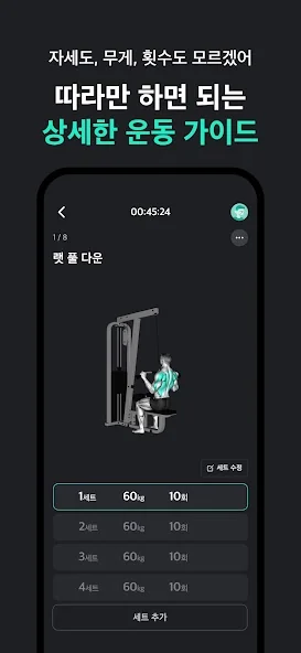 운동하는 동안에는 휴식 시간과 세트 간 타이머도 자동으로 체크해줘서 흐름을 끊기지 않게 도와줘요. Apple Watch와 연동하면 진동 알림도 받아볼 수 있어, 운동 중에도 편리하게 시간 관리가 가능하죠. 또, 무게와 횟수 추천 기능이 있어서, 지난 기록을 참고해 자연스럽게 운동 강도를 조절할 수 있어요.