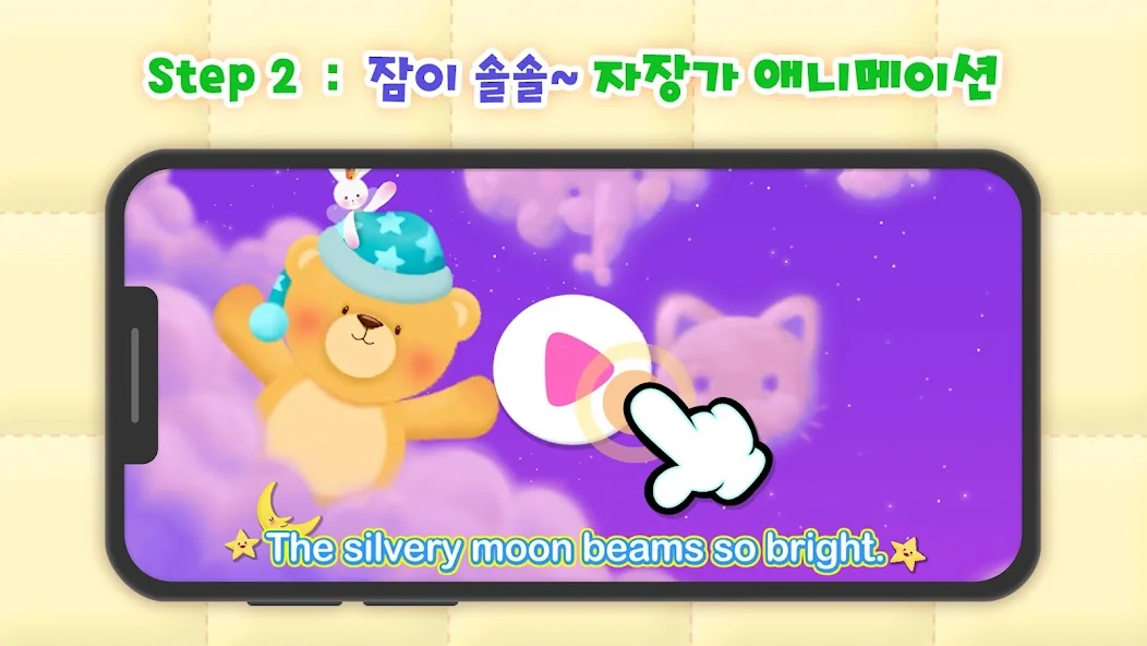 이 앱에서는 다양한 아기 자장가 영상도 만나볼 수 있어요. 한국어와 영어로 들려주는 자장가 애니메이션이 12편이나 있어서, 아이가 좋아하는 곡을 골라 들려줄 수도 있죠. 잠들기 전에 차분한 음악과 함께 영상도 보여주면 아이의 마음이 한결 편안해질 거예요.