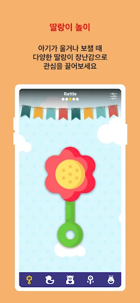 아기 장난감 기능도 빠질 수 없어요. 딸랑이, 삑삑이, 오리장난감 등 여러 가지 소리나는 장난감들을 앱에서 바로 사용할 수 있어서, 울 때 관심을 돌리거나 달래기 정말 편리하답니다. 특히 차 안에서도 유용하게 쓰이더라고요.