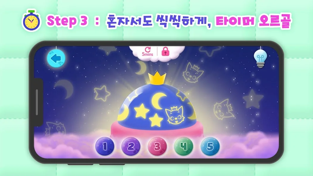 또한, 수면을 돕는 오르골 자장가와 수면등도 준비되어 있어요. 따뜻하고 잔잔한 음악과 함께 색상 조절이 가능한 수면등을 활용하면 아이를 부드럽게 잠재울 수 있답니다. 화면을 끄더라도 음악이 계속 재생되는 잠자기 모드도 있어, 밤중에 아이가 깨어나도 걱정 없어요.