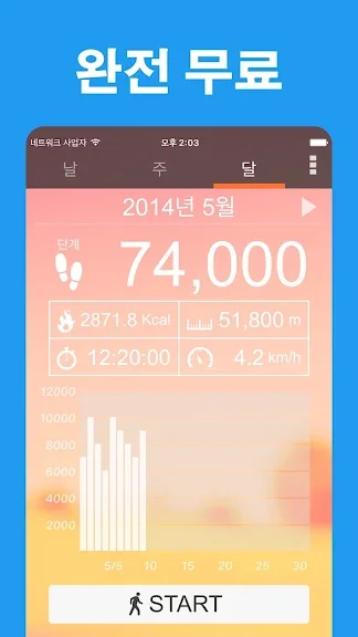 보고서 그래프는 가장 혁신적인 그래프로서 걷기 데이터를 추적 할 수 있도록 모바일 장치 용으로 특별히 설계되었습니다. 주간 및 월간 통계를 그래프로 확인할 수 있습니다.