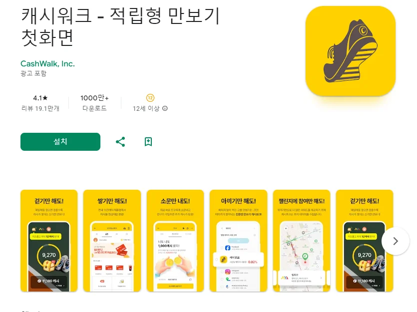 1) 캐시워크 - 적립형 만보기 첫화면 어플 소개