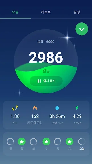 보고서 그래프는 가장 혁신적인 그래프로서 걷기 데이터를 추적 할 수 있도록 모바일 장치 용으로 특별히 설계되었습니다. 지난 24시간, 주간 및 월간 통계를 그래프로 확인할 수 있습니다.