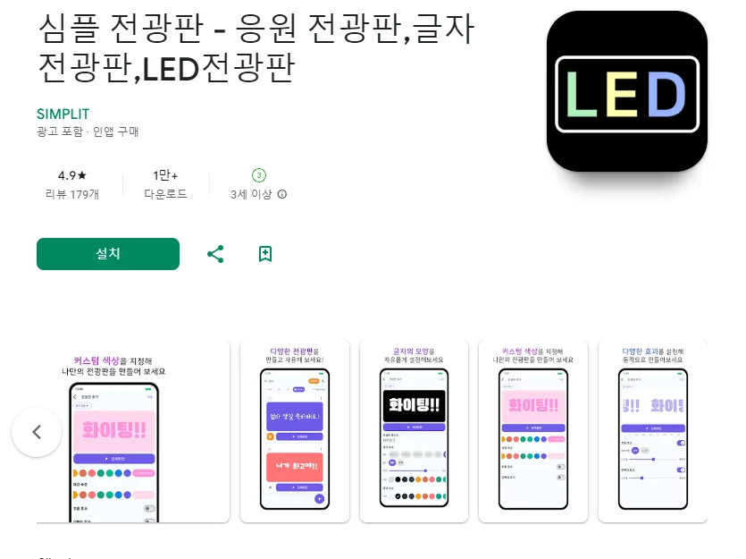 1) 심플 전광판 - 응원 전광판,글자 전광판,LED전광판 어플 소개