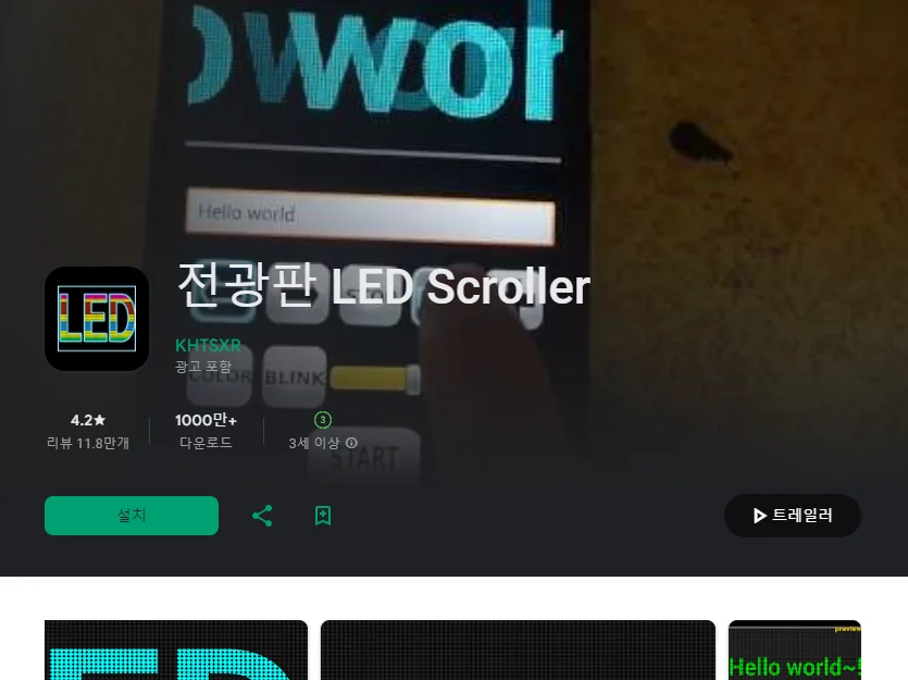 이 어플은 구글플레이스토어에서 "응원"로 검색했을때 2번째로 나오는 어플입니다. 아래는 전광판 LED Scroller 어플에 대한 자세한 설명이니 참고하세요.