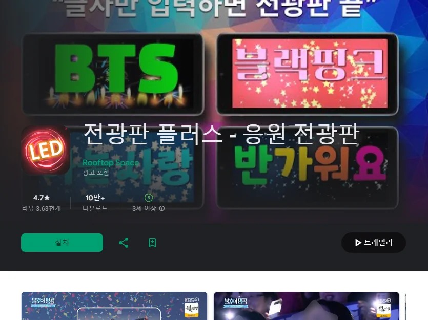 아래는 전광판 플러스 - 응원 전광판 어플에 대한 스크린샷 정보입니다.