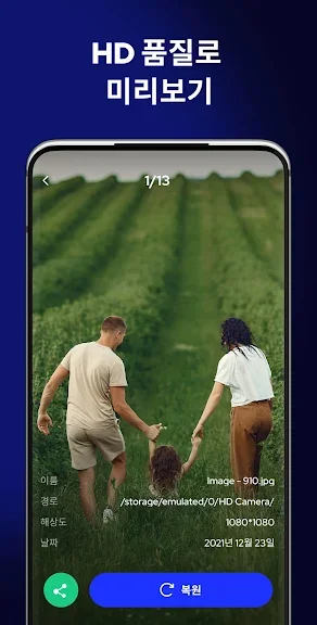 클릭 한 번만으로 삭제된 사진을 안전하게 복구할 수 있습니다.