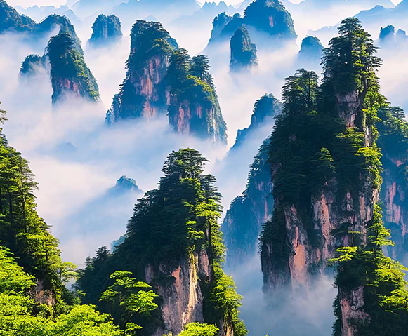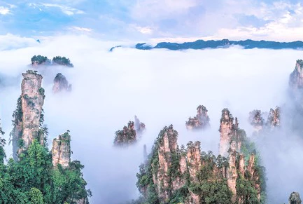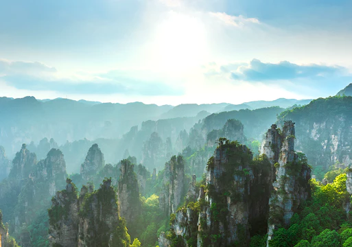 중국 후난성에 위치한 장자제는 천문산, 무릉원, 원가계, 양가계 등의 아름다운 경치로 유명하며, 이 지역은 유네스코 세계유산으로 지정되어 있습니다.
