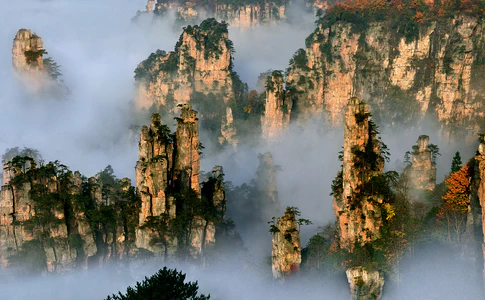 가을은 장가계를 방문하기에 가장 좋은 시기 중 하나입니다. 기온은 시원하고 쾌적하며, 평균 기온은 10°C에서 20°C 사이입니다. 이 시기에는 장가계의 산과 숲이 화려한 가을 단풍으로 물들며, 맑은 날씨가 지속되어 사진 촬영하기에 좋습니다. 가을은 여행객이 많아지는 시즌이므로, 숙소와 항공권은 미리 예약하는 것이 좋습니다.