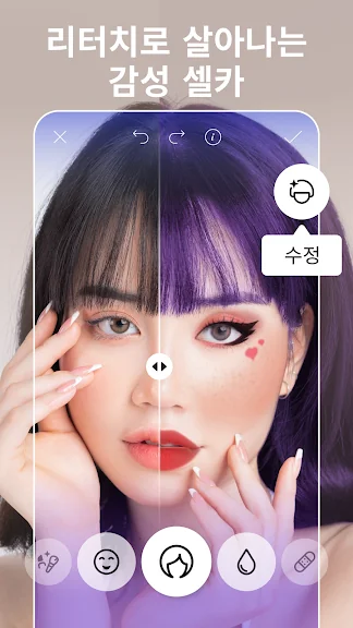 • 헤어 컬러 변경 도구, 메이크업 스티커 및 인기 스티커 등으로 셀카 보정