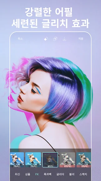 • 동영상 편집기에서 글리치 동영상 효과 및 기타 트렌디한 필터 사용