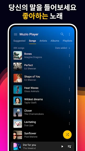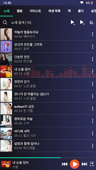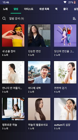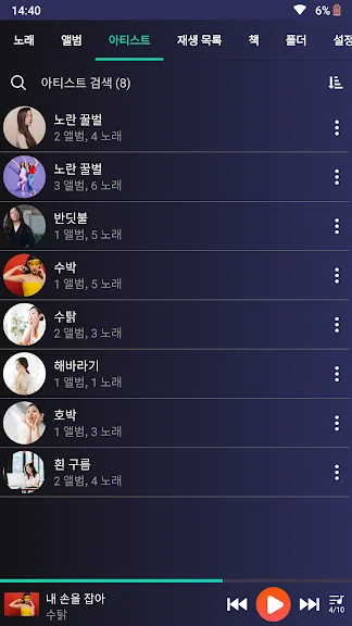 🎵 모든 노래, 아티스트, 앨범, 폴더 및 재생 목록별로 보기 가능
