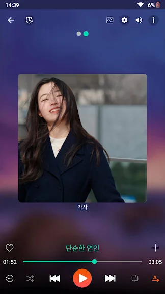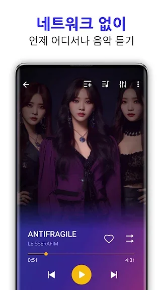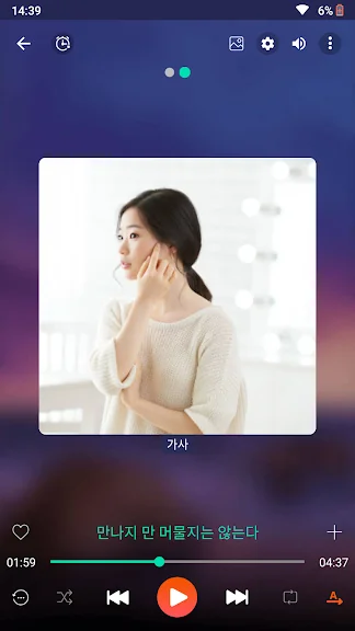 세련되고 간단한 사용자 인터페이스로 음악 감상을 즐기세요. 뮤직 플레이어는 완벽한 선택입니다. 마음에 드는 색상 테마 또는 플레이어 테마 역시 선택할 수 있습니다.