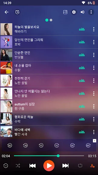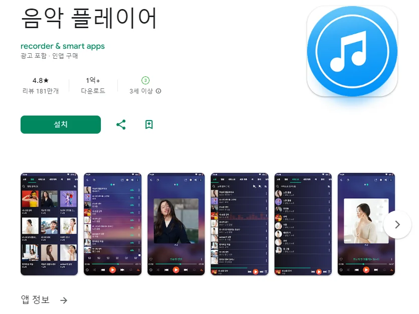 아래는 음악 플레이어 어플에 대한 스크린샷 정보입니다.