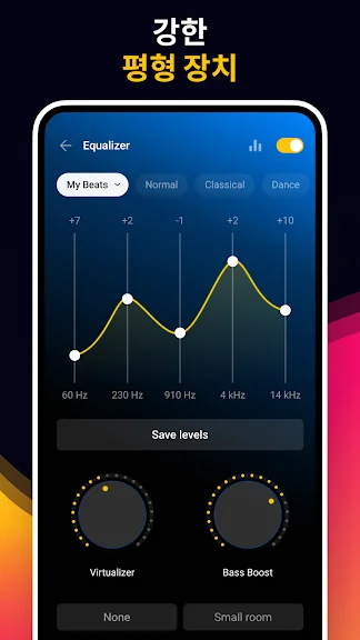 🎵 베이스 부스트, 리버브 효과 등을 갖춘 강력한 이퀄라이저