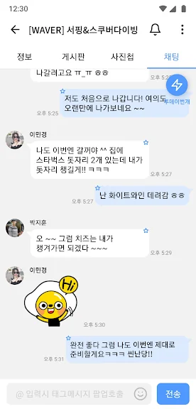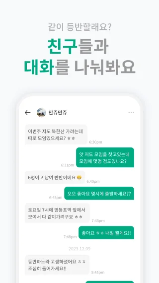 등산에 관한 얘기도하고 수다도 떨고 채팅 하자.