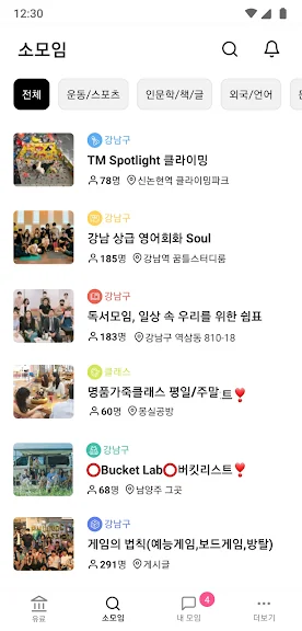 사교/인맥 모임까지 수많은 소모임들이 있고
