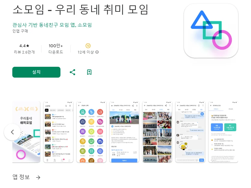 아래는 소모임 - 우리 동네 취미 모임 어플에 대한 스크린샷 정보입니다.