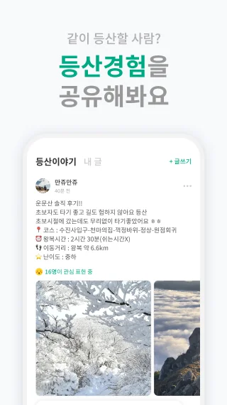 - 나와 비슷한 등산 경험을 하는 친구들을 찾아봐요