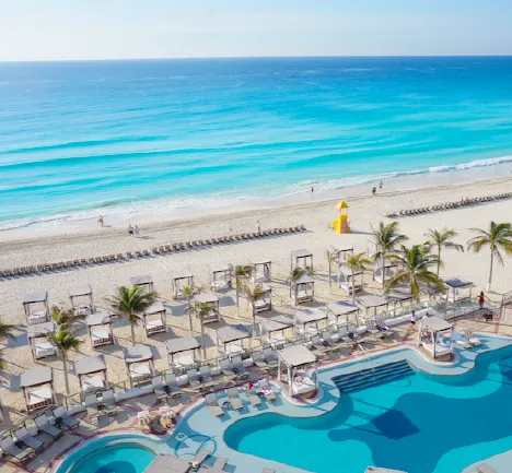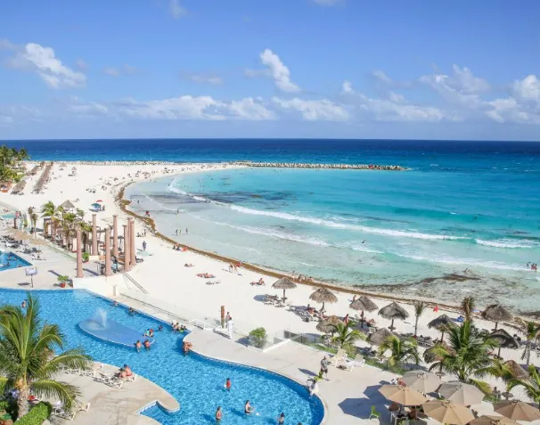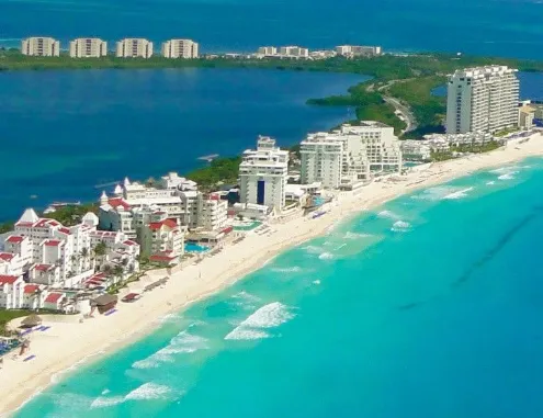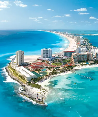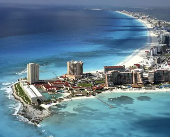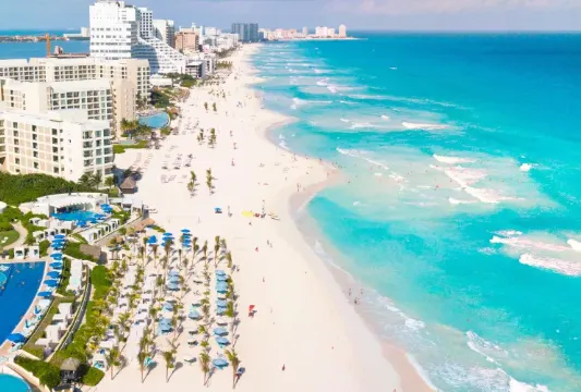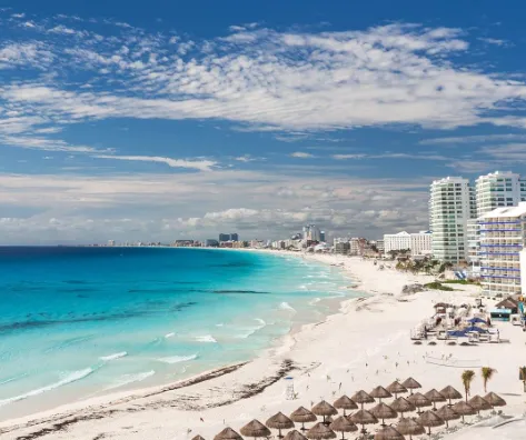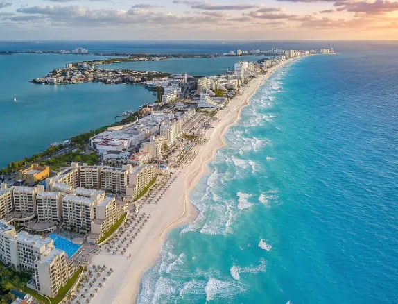 ◎ 칸쿤 비치 (Cancun Beach): 흰 모래와 아름다운 푸른 바다가 인상적인 해변으로 유명합니다.