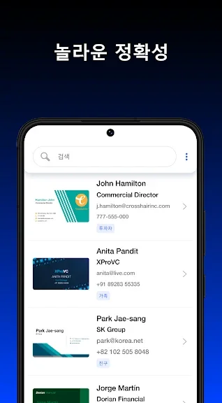 현재 시장에서 가장 정확한 명함 스캐너로 인정받았습니다.