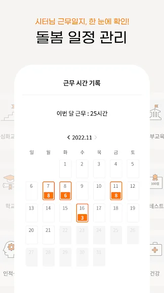 - 돌봄 관리 : 시터님 근무 일지 캘린더로 확인