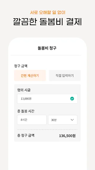 - 돌봄 결제 : 서로 협의한 시급과 근무 일지로 오해없이 깔끔하게 결제
