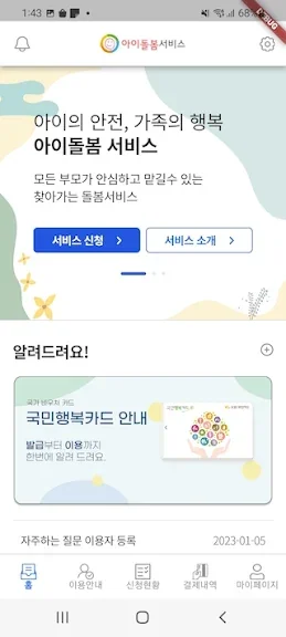 아래는 아이돌봄서비스 어플에 대한 스크린샷 정보입니다.