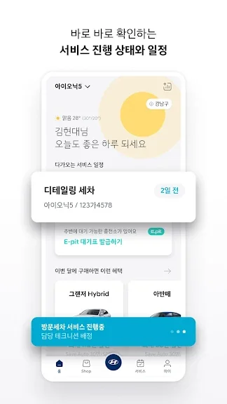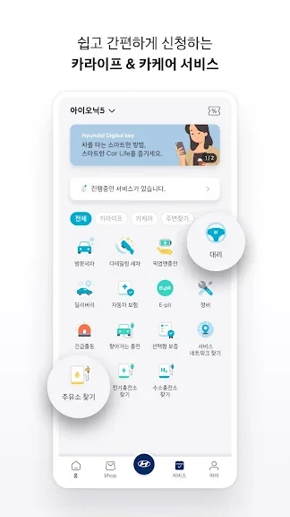 - 정비예약, 세차, 충전, 대리 등 다양한 서비스를 간편하게 신청해요