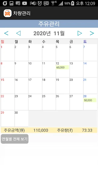 ㅇ 달력에 주유 기록관리