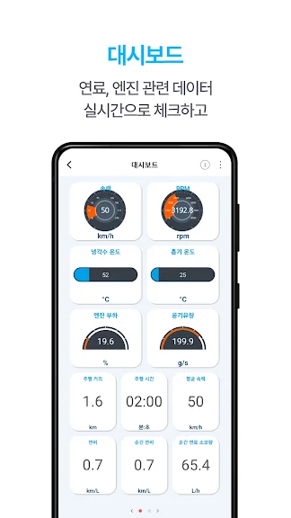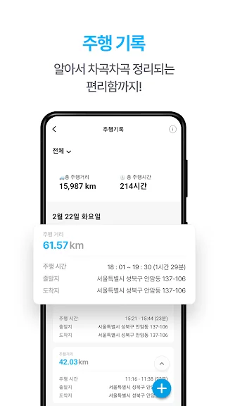 • 매 운전 시 주행거리, 시간, 평균속도, 연비 등을 기록합니다.