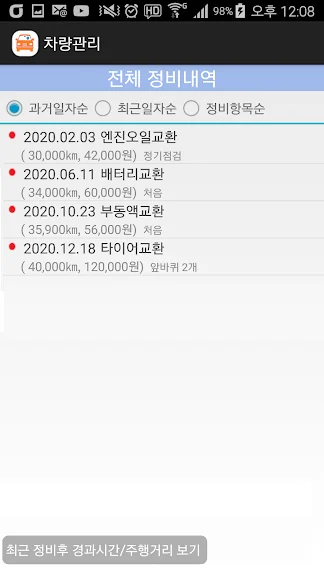 2) 차량관리 차계부 어플 스크린샷