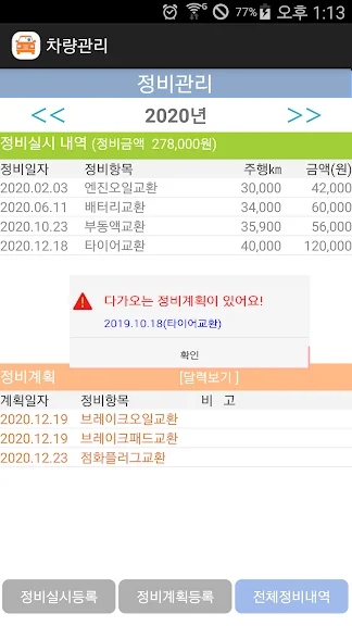 ㅇ 전체 정비 내역 보기